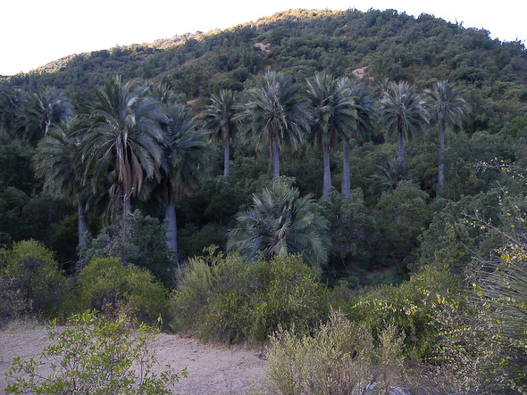 Ik zocht een mooi plekje om de tent op te zetten en daarbij moest je vooral goed opletten dat je hem niet in de stront zette. Het meeste was al flink opgedroogd, maar blijkbaar staat hier dus wel eens een koe of stier bij je tent! Overal waar ik keek zag ik ook de uiterst bijzondere palmen van Ocoa (palmares chilenos), met zijn dikke buik en meestal grote hoogte.