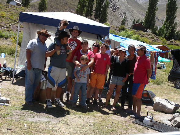 Het gebied rond Termas del Flaco is nog vergelijkbaar met dat van Baños Morales en Termas de Colina. Bij aankomst wist ik nog niet waar ik ging overnachten, maar bij het bordje "camping" ben ik uitgestapt: een grote, kalige vlakte met her en der pick-ups, trucks en in elkaar geflanste partytenten. Natuurlijk werd ik bij het betreden van het veld van alle kanten nagestaard, maar een eenvoudig "hola" was voldoende om het staren te doen stoppen. Snel de tent opgezet en hij staat inmiddels al beter dan de eerste keer. De kosten voor het kamperen zijn relatief hoog ($5000), maar je kunt maar beter gewoon betalen.