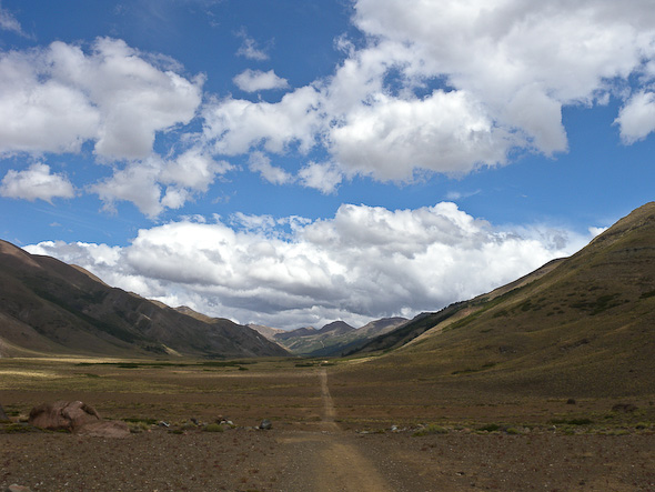 Heel even maakte ik me deze ochtend druk of ik vandaag wel ver genoeg zou kunnen komen. Maar bij het zien van de prachtige vallei waarin ik me bevond, verdween dat gevoel. Ook de wolken verdwenen al snel en zodoende kon mijn tentje toch nog een beetje opdrogen. En alles warmde lekker op.