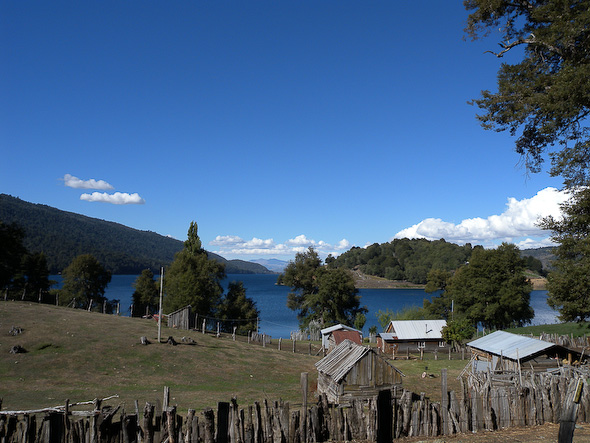Schattige huisjes en boerderijtjes langs lago Icalma