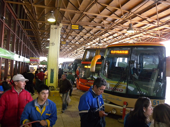 Busterminal van Puerto Montt: een bedrijvige boel!