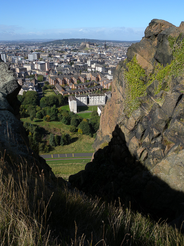 Links deel van "new town", middenonder Waverley station, en daarachter en rechts "old town".