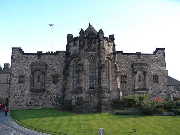 Hemellicht in de kleine, 13e eeuwse kapel.Het oudste nog bestaande onderdeel van Edinburgh Castle.