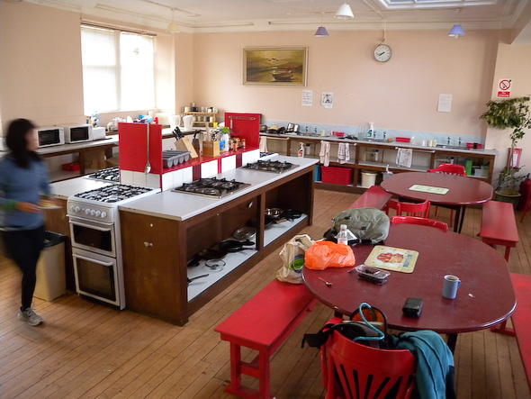 Dag 4: De gezellige keuken in het hostel in Portree, Isle of Skye!Megan en ik bereiden ons voor op een eerste wandeling.