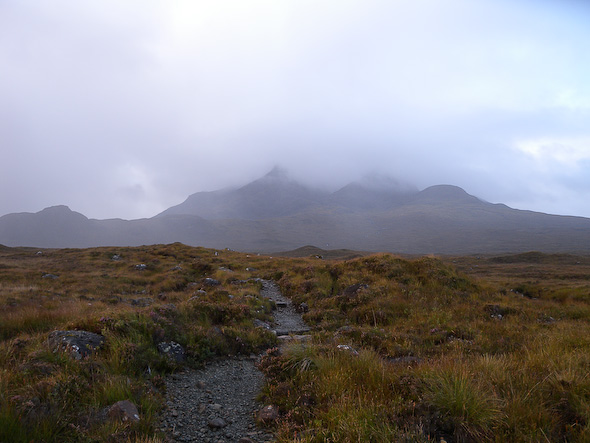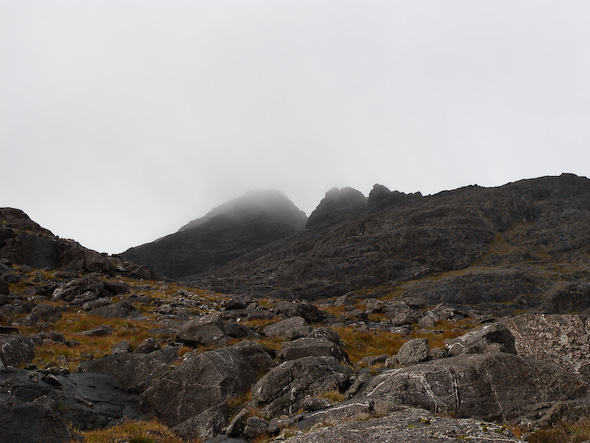 Nu nog verscholen in de wolken: "the Black Cuillins"
