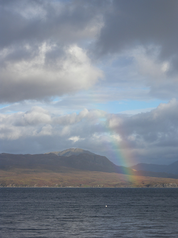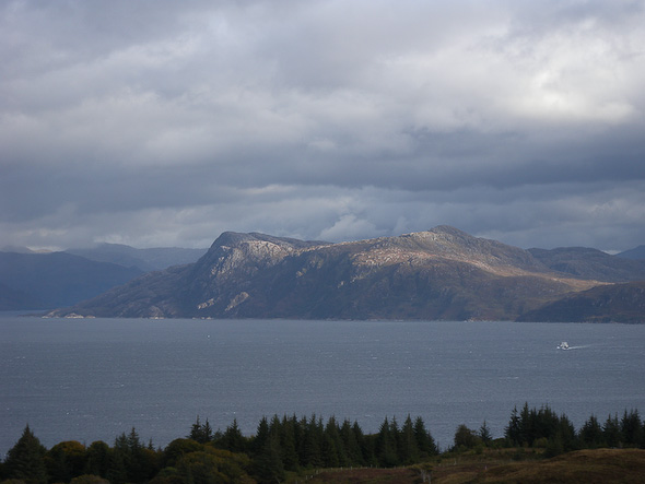 Aan de overkant, het vasteland, de mooie rotspartij van Carn a'Ghobhair